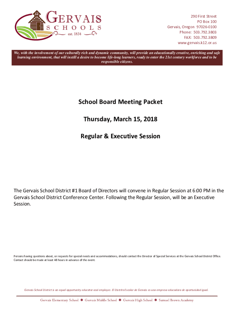 290 First Street PO Box 100 Gervais, Oregon 970260100 Phone: 503.792.3803 FAX: 503.792.3809 www.gervais.k12.or.us We, with the involvement of our culturally rich and dynamic community, will provide