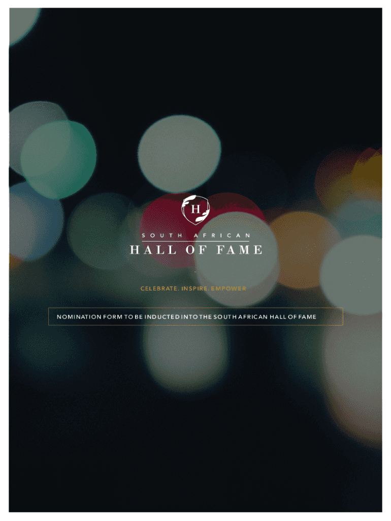 C CELEBRATE E. IN S PI R E. EM PO WE RNO MIN ATI ON F OR M T O BE I N DU CT ED I TO T H E S OUT A FRI CA N HALL OF FA M EH O W T O N O M I N ATE The Public and or anybody is allowed to nominate any