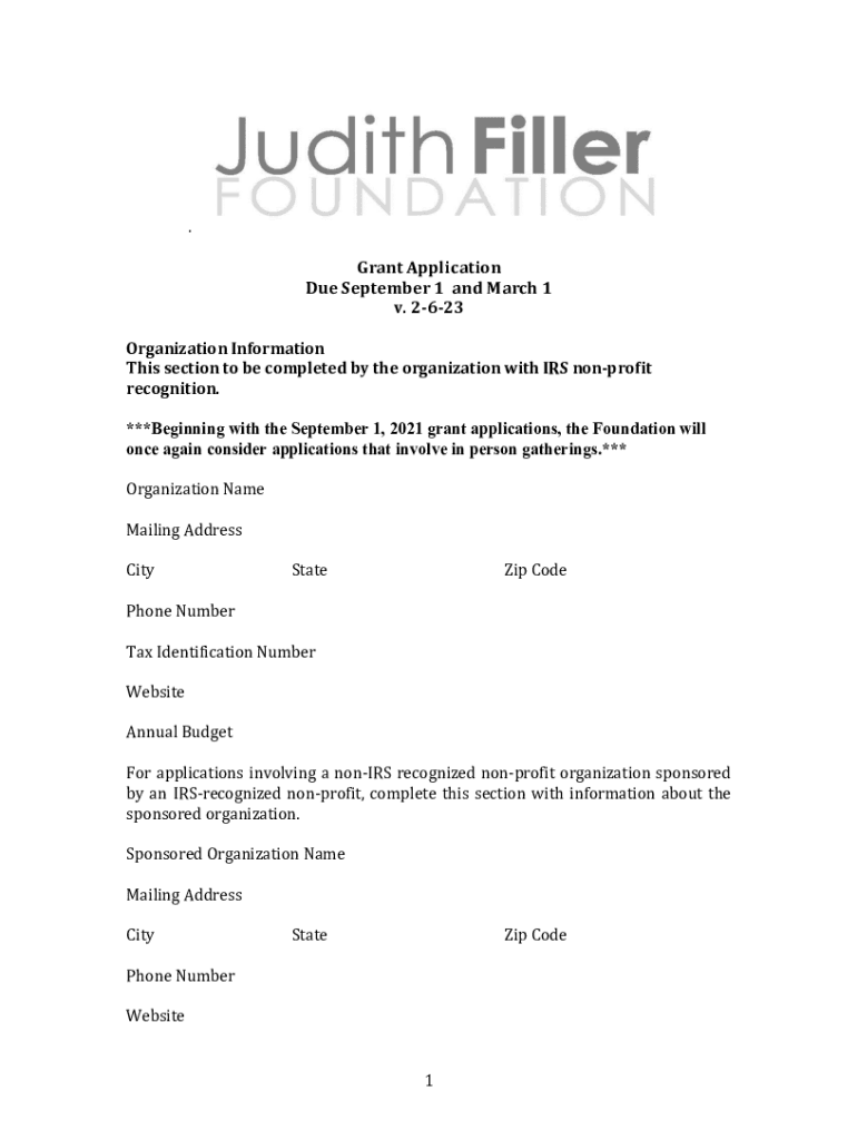 . Grant Application September 1and March 1v. 2623Organization InformationThis section to be completed by the organization with IRS nonprofit recognition.***Beginning with the September 1, 2021, grant