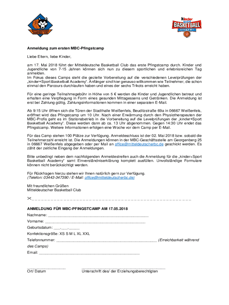 am 17. Mai 2018 fort her Mitteldeutsche Basketball Club was Erse Pfingstcamp Dutch. Kinder UND