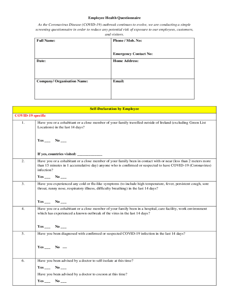 Employee Health Questionnaire is not the form you're looking for?Search for another form here.