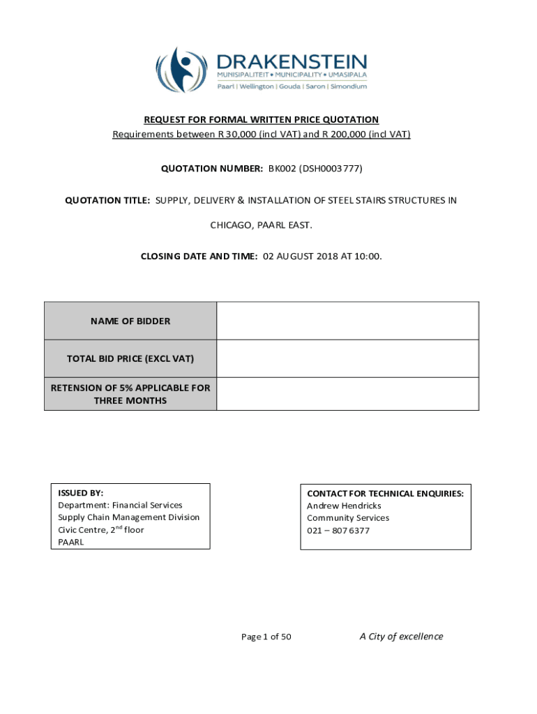 REQUEST FOR FORMAL WRITTEN PRICE QUOTATION