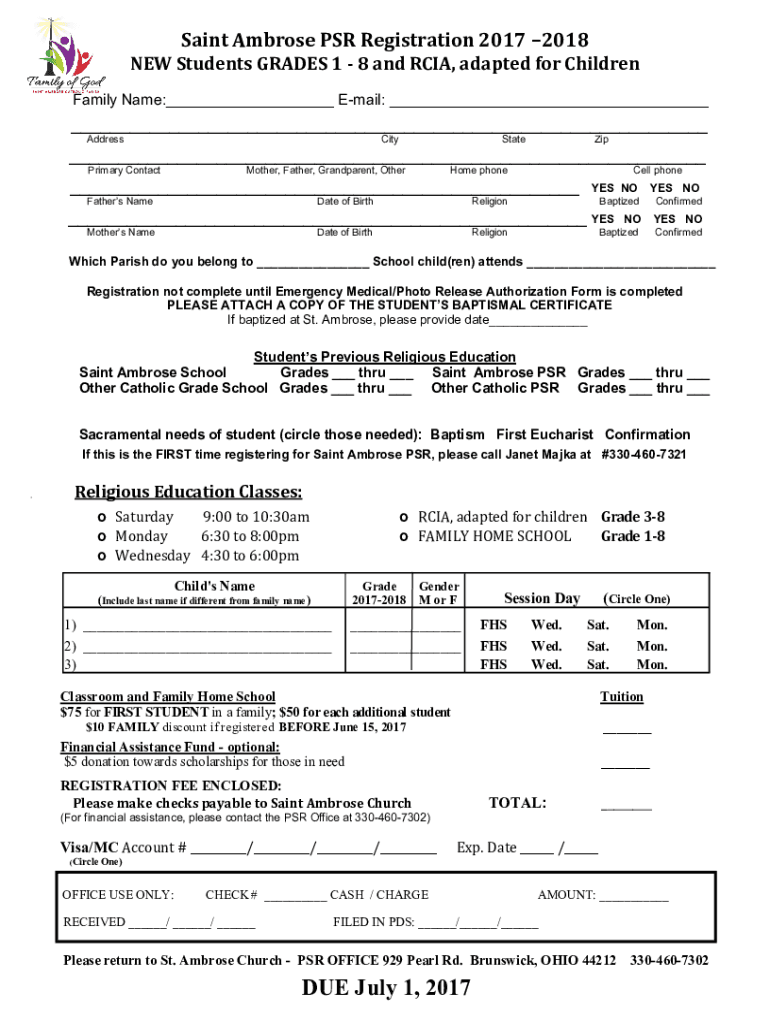 Saint Ambrose PSR Registration 2017 2018