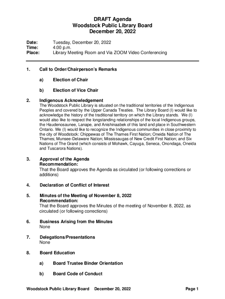 Library Meeting Room and Via ZOOM Video ConferencingCall to Order/Chairpersons