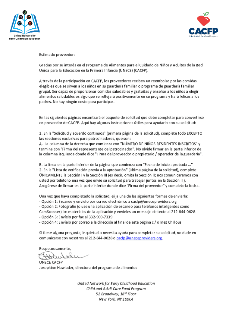 Estimate provender: Gracias POR SU inters en El Program de Alimentos para El Doodads de Nios y Adults de la Red UNIDO para la Education en la Primer Infancy (UN ECE) (CA CFP). A trans DE la participating