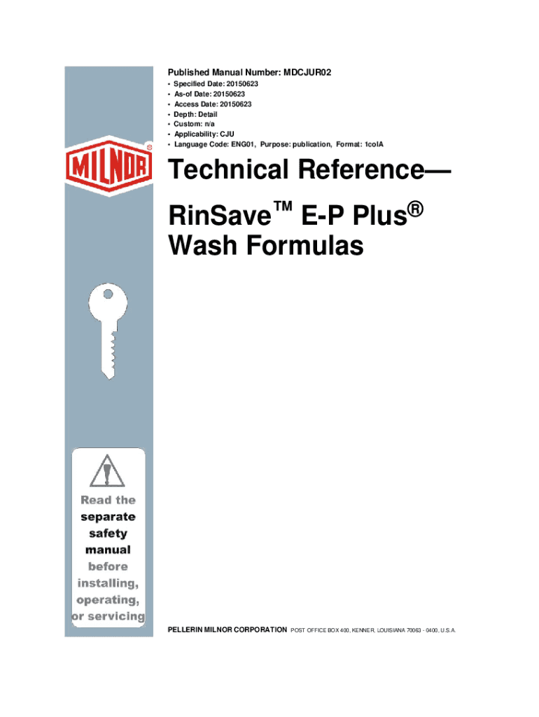 Get the free Technical Reference RinSave E-P Plus Wash Formulas