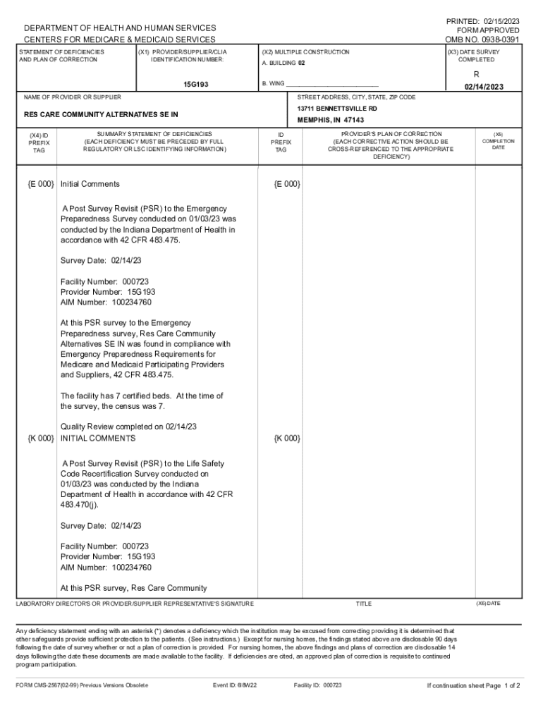 PRINTED: 02/15/2023 FORM APPROVEDDEPARTMENT OF HEALTH AND HUMAN SERVICES CENTERS FOR MEDICARE & MEDICAID SERVICES STATEMENT OF DEFICIENCIES AND PLAN OF CORRECTION(X1) PROVIDER/SUPPLIER/CIA IDENTIFICATION