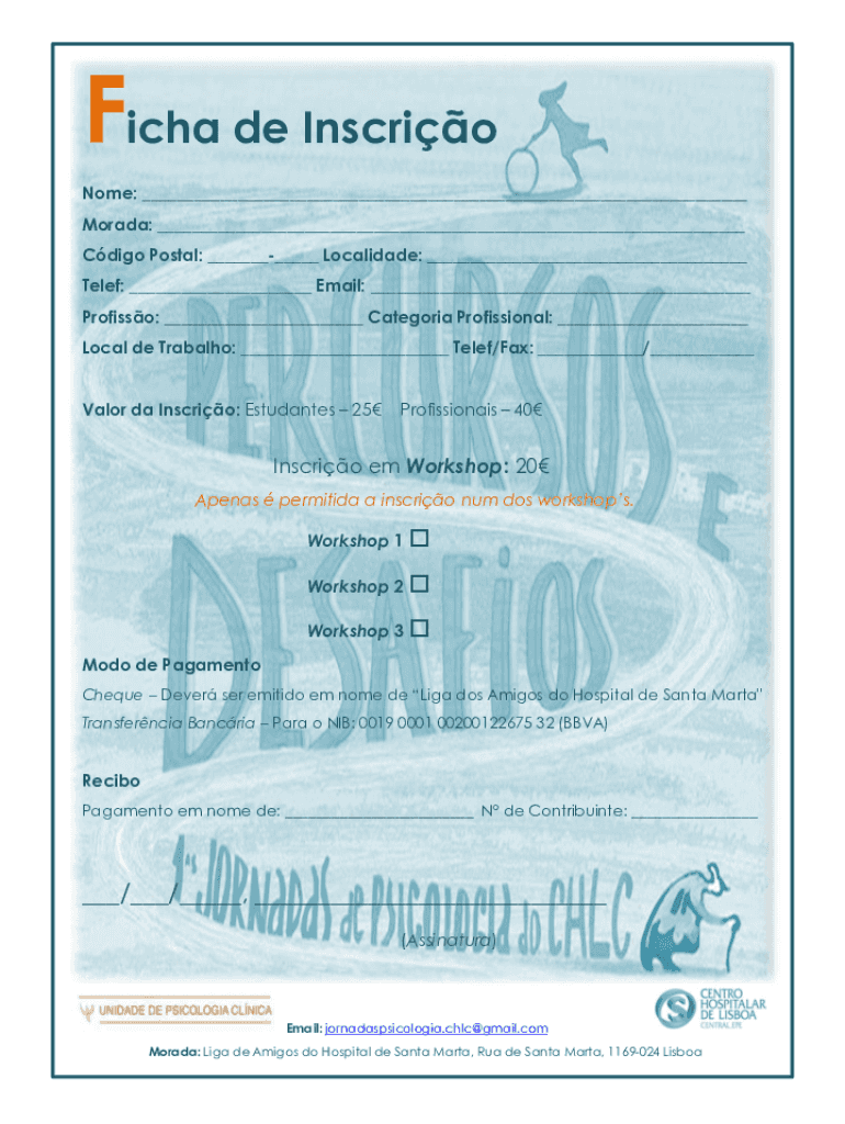 FICA de Inscrio Nome: ___ Moreira: ___ Cargo Postal: ______ Localized: ___ Telex: ___ Email: ___ Professor: ___ Category Professional: ___ Local de Trabalho: ___ Telex/Fax: ___/___ Valor to Inscribe: