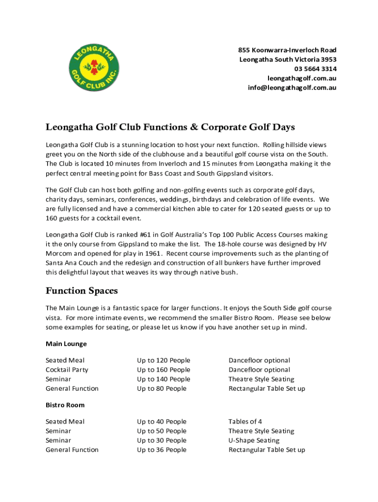 info@leongathagolf.com.auLeongatha Golf Club Functions & Corporate Golf Days