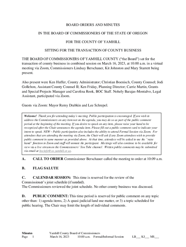 Get the free transaction of county business in combined session on March 16, 2023, at 10:00 a