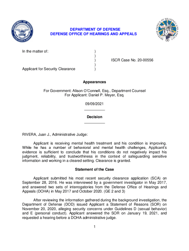 Get the free ISCR Case No ) Applicant for Security Clearance