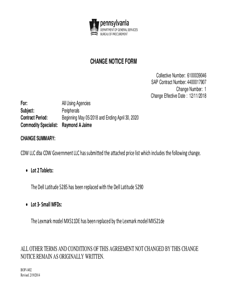 Fill out your change notice form cdw online with pdfFiller!