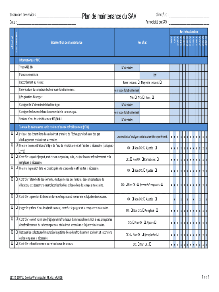 Periodicity Du SAV: ___DE maintenance Du SAV3600720010800144001800021600252002880032400360003960043200Betriebsstundennon effectueffectuTechnicien de service: ___Plan