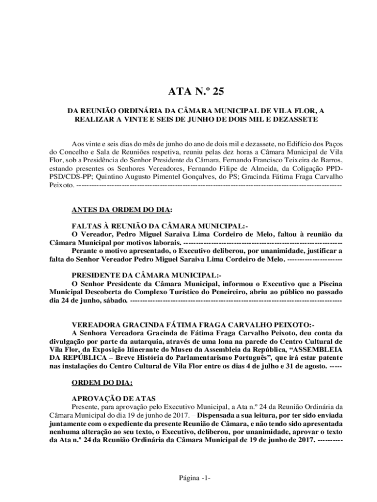 DA REUNION ORD INRIA DA CLARA MUNICIPAL DE VILA FOR, A