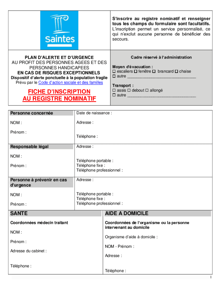 Obtenir le gratuit INSCRIPTION PLAN D'ALERTE ET D'URGENCE