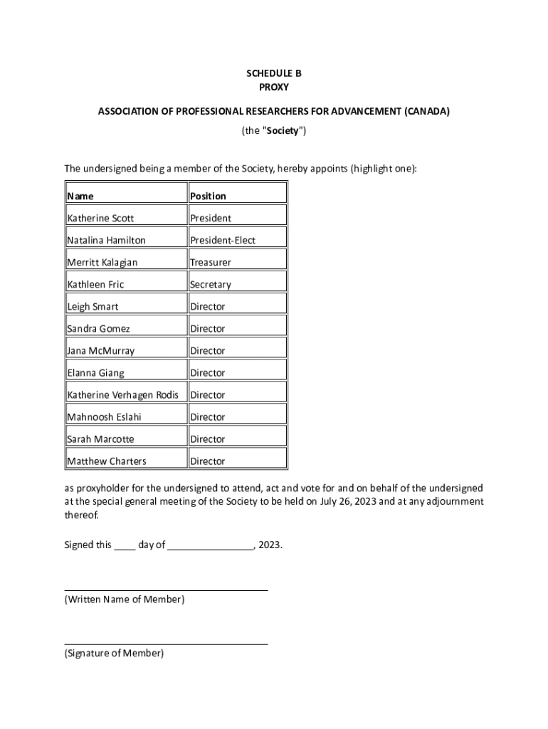 Get the free Schedule B - Apra Canada