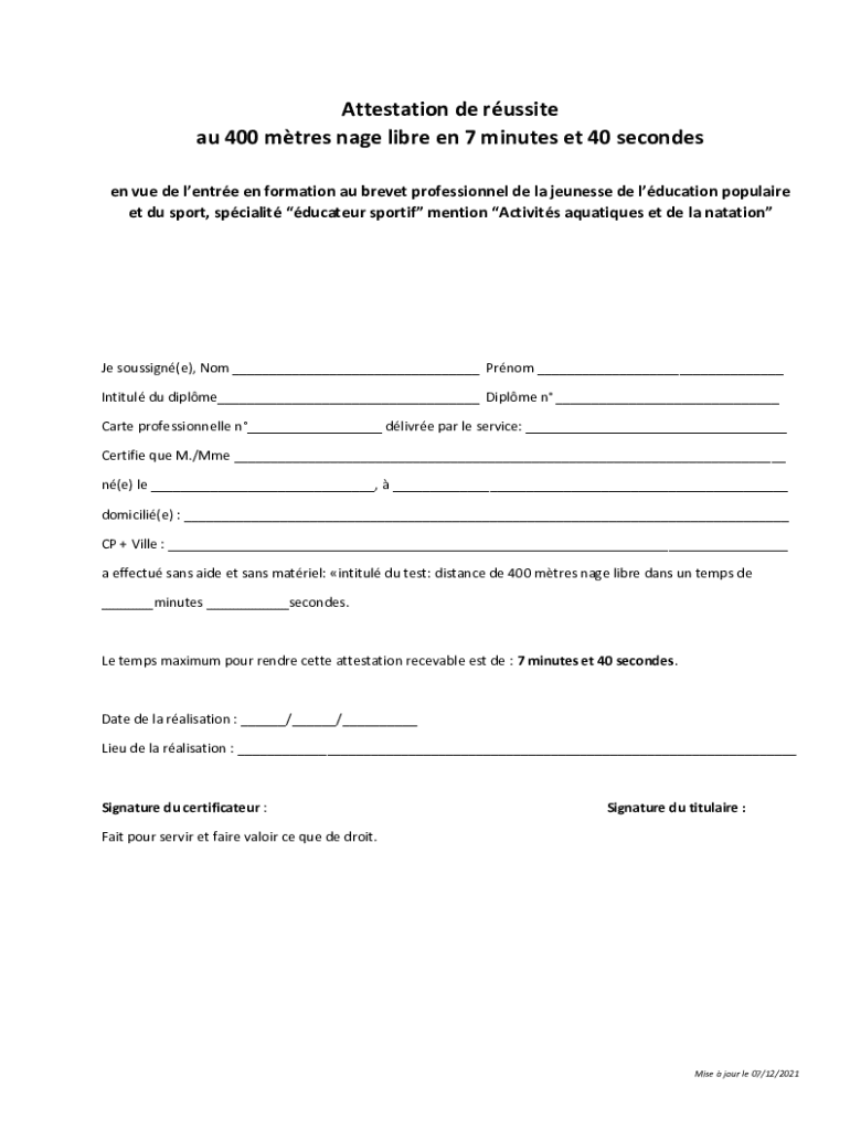 Obtenir le gratuit Dossier d'Inscriptionl Pre formtion du BPJEPS ANN