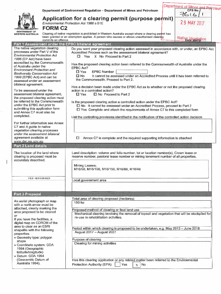 Get the free Application for a clearing permit (purpose permit) FORM C2 2 ...