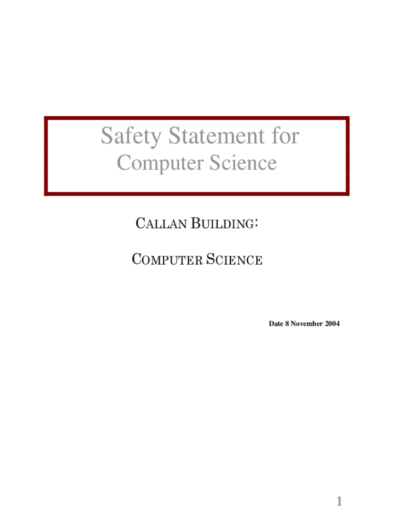 Safety Statement for Computer ScienceDate 8 November 20041INDEXSECTION 1Foreword 1. Responsibility for Health and Safety 2. First Aid 3. Reporting of Accidents 4. Training 5. Maintenance Operations