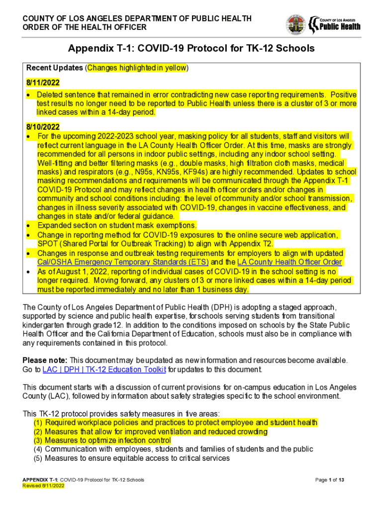 ORDER OF THE HEALTH OFFICERAppendix T1: COVID-19 Protocol for TK12 Schools