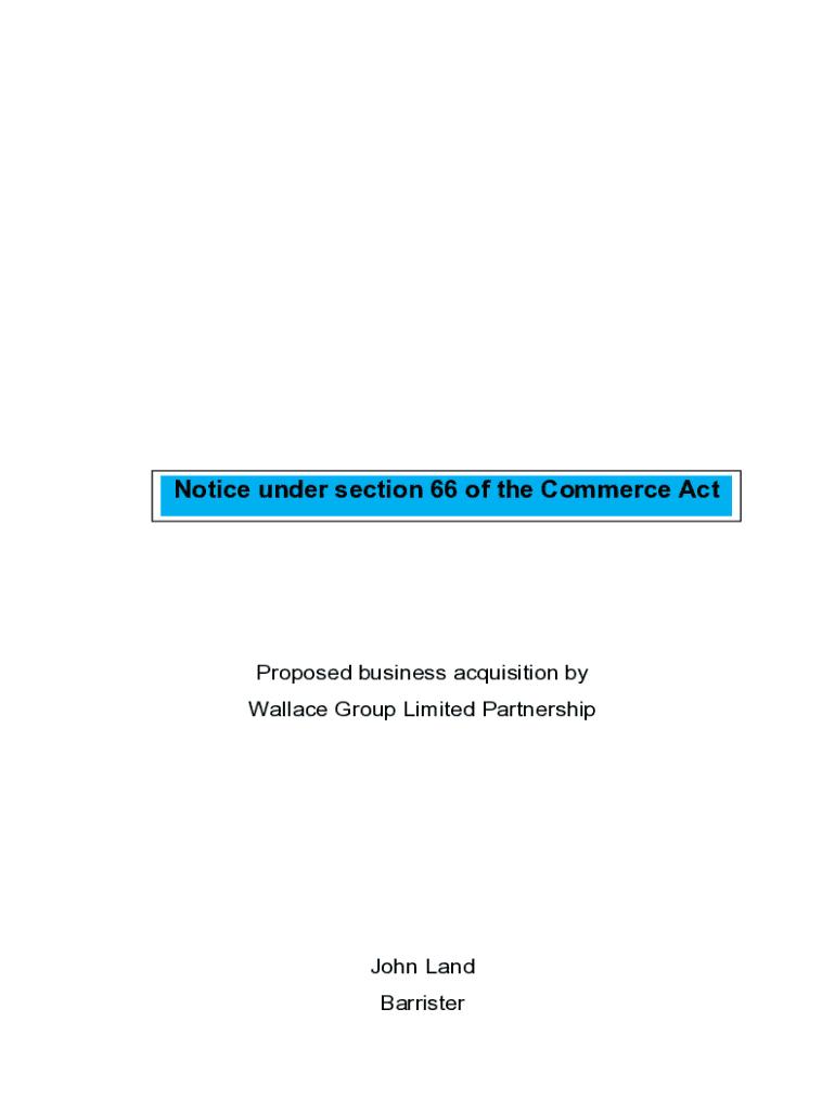 Notice under section 66 of the Commerce Proposed business acquisition by