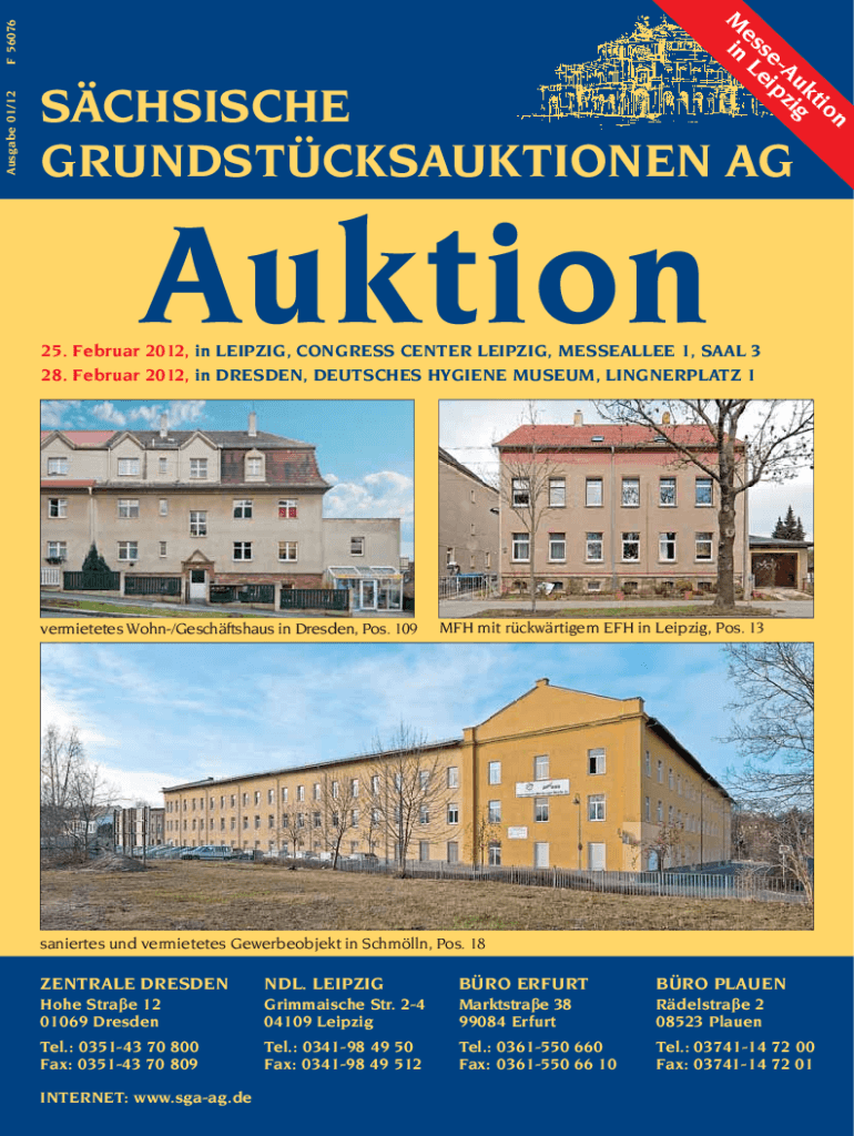 GRUNDSTCKSAUKTIONEN AGAuktion25. February 2012, in LEIPZIG, CONGRESS CENTER LEIPZIG, MESSEALLEE 1, SEAL 3