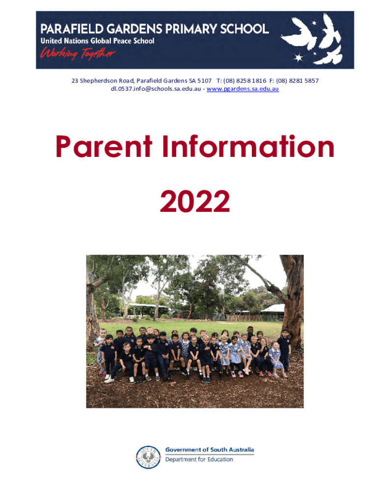23 Shepherd son Road, Par afield Gardens SA 5107 T: (08) 8258 1816 F: (08) 8281 5857 dl.0537.info@schools.sa.edu.au www.pgardens.sa.edu.auParent Information 2022CONTENTSPAGEPrincipals Message3Our