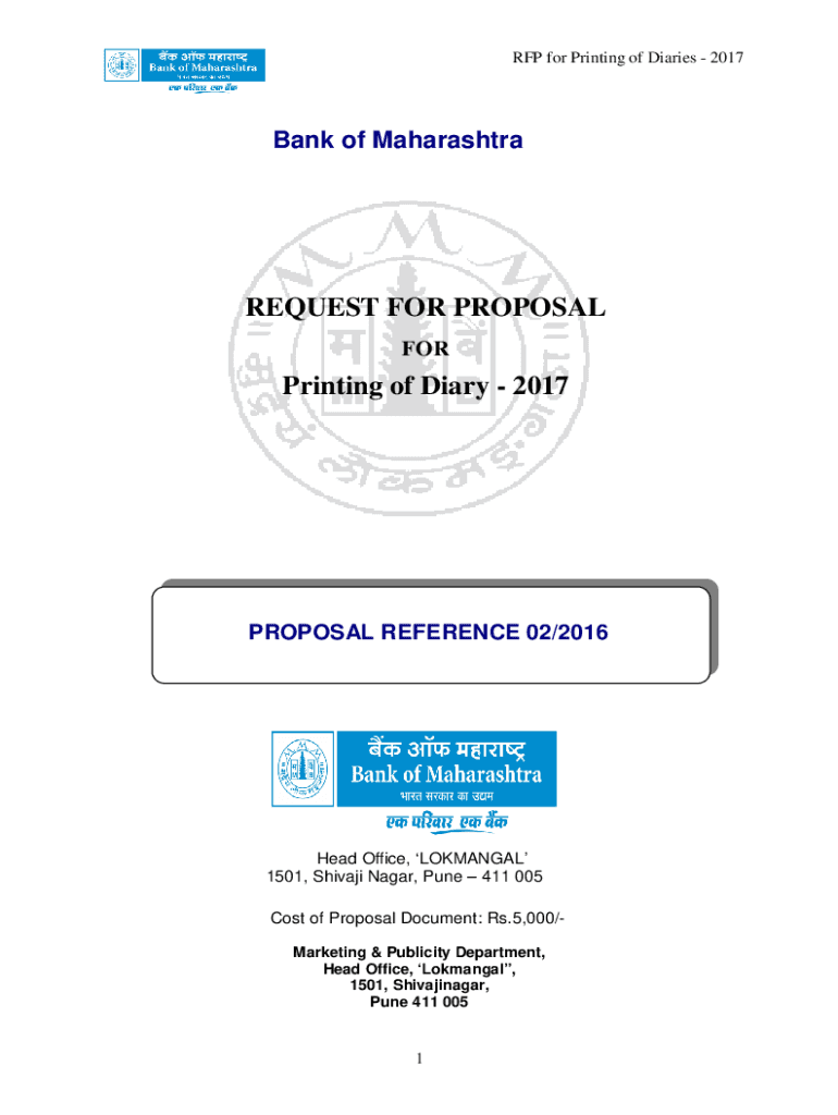 RFP for Printing of Diaries 2017Bank of MaharashtraREQUEST FOR PROPOSAL