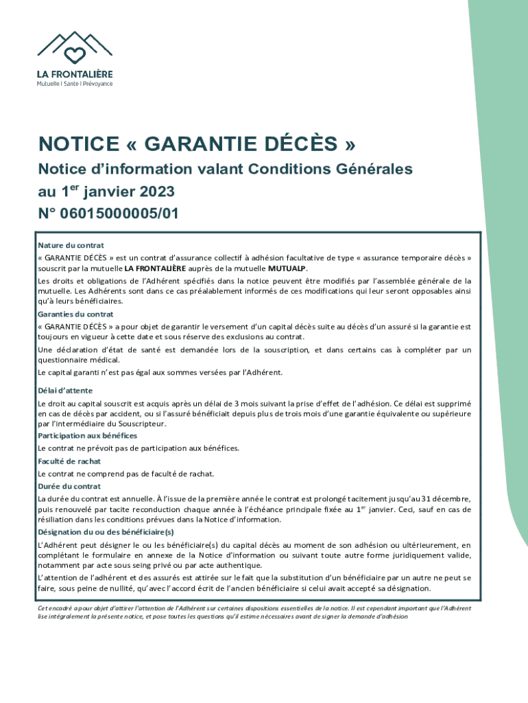 Obtenir le gratuit Notice d'information valant Conditions Gnrales ...