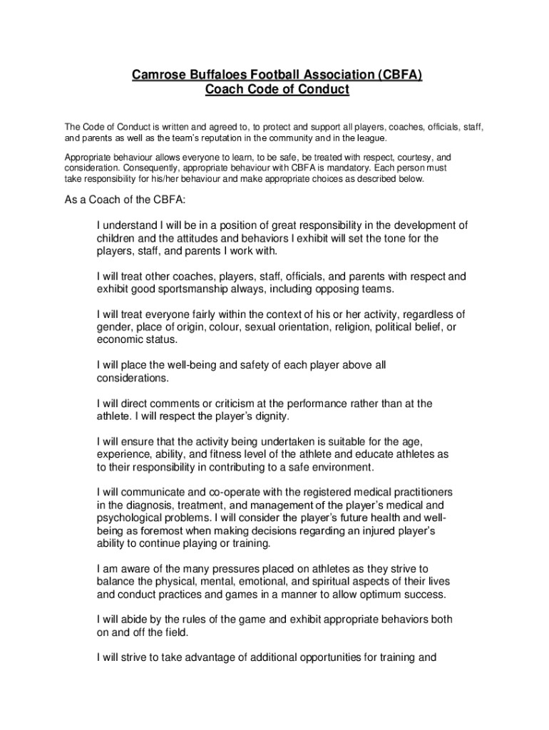 Get the free Camrose Buffaloes Football Association (CBFA) Coach Code of ...