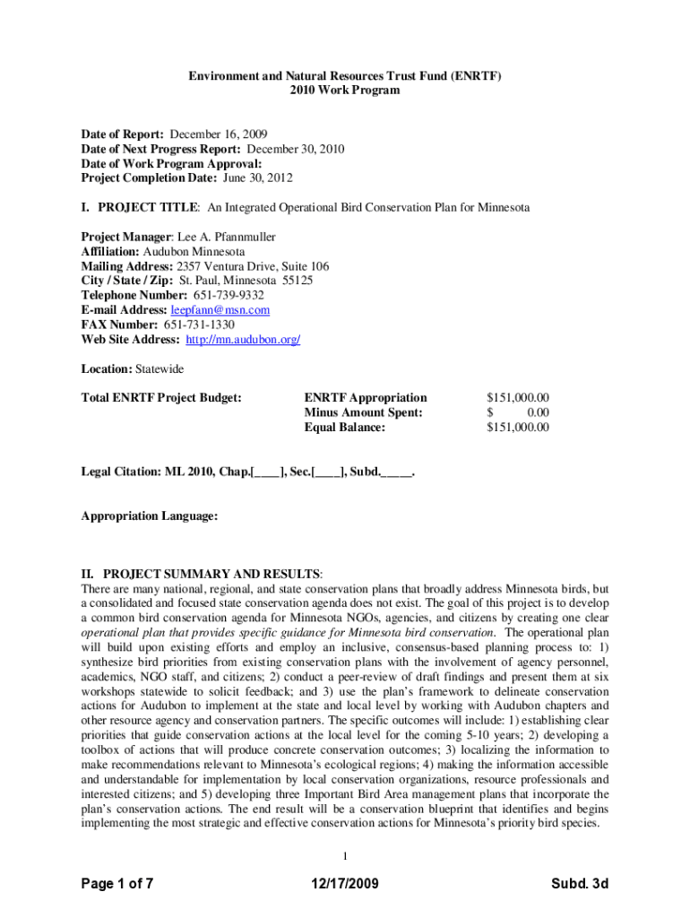 Get the free Integrated, Operational Bird Conservation Plan for Min - LCCMR