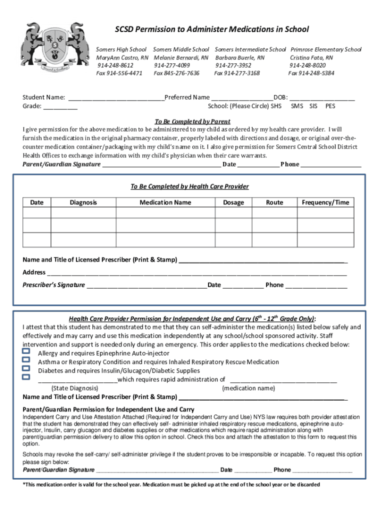 SCSI Permission to Administer Medications in School Homers High School Maryann Castro, RN 9142488612 Fax 9145564471Somers Middle School Homers Intermediate School Melanie Bernard, RN Barbara Berle,
