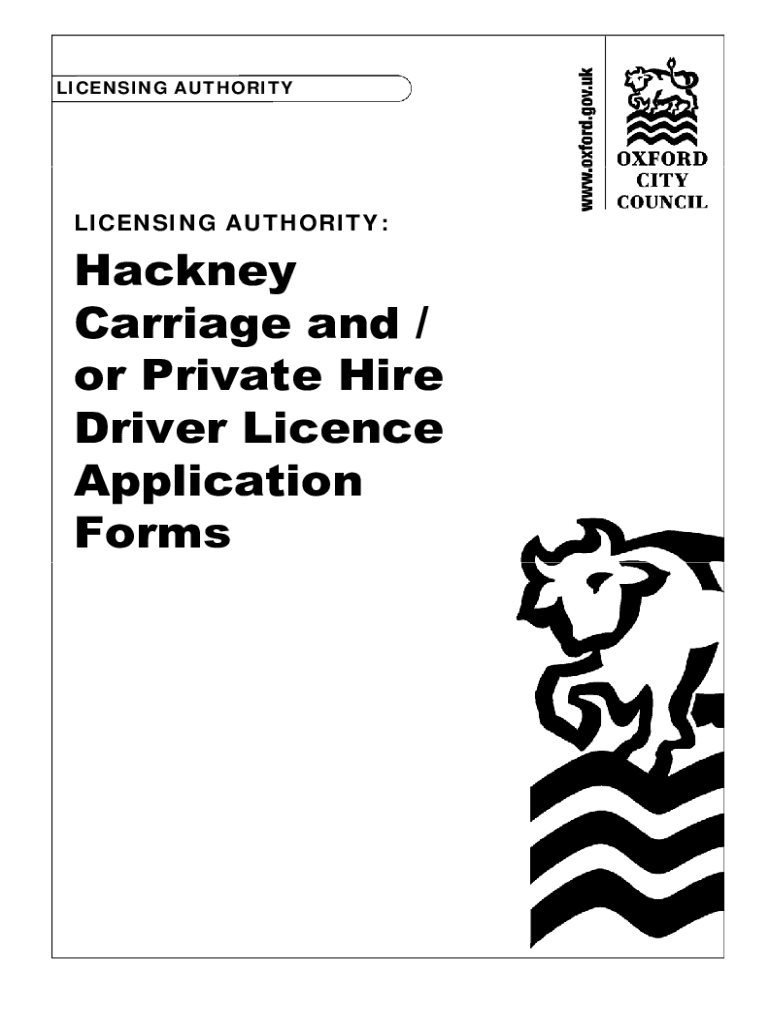 LICENSING AUTHORITYLICENSING AUTHORITY:Hackney Carriage and / or Private Hire Driver License Application FormsOXFORD CITY COUNCIL Hackney Carriage and / or Private Hire Driver License Application