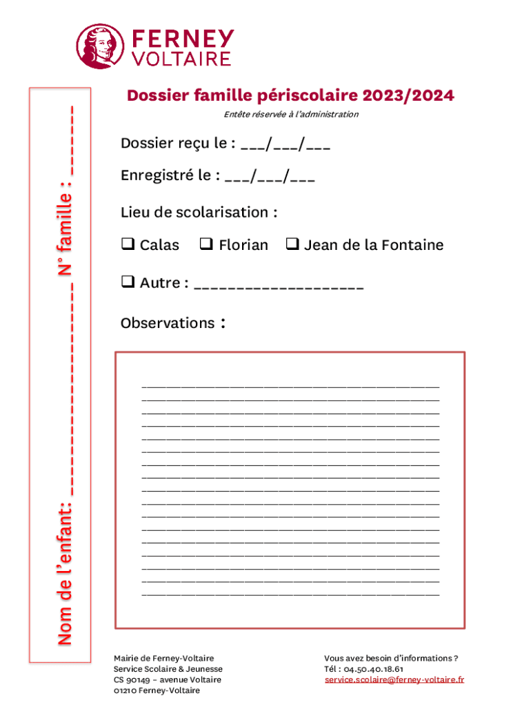 Obtenir le gratuit Nom de lenfant: N famille :