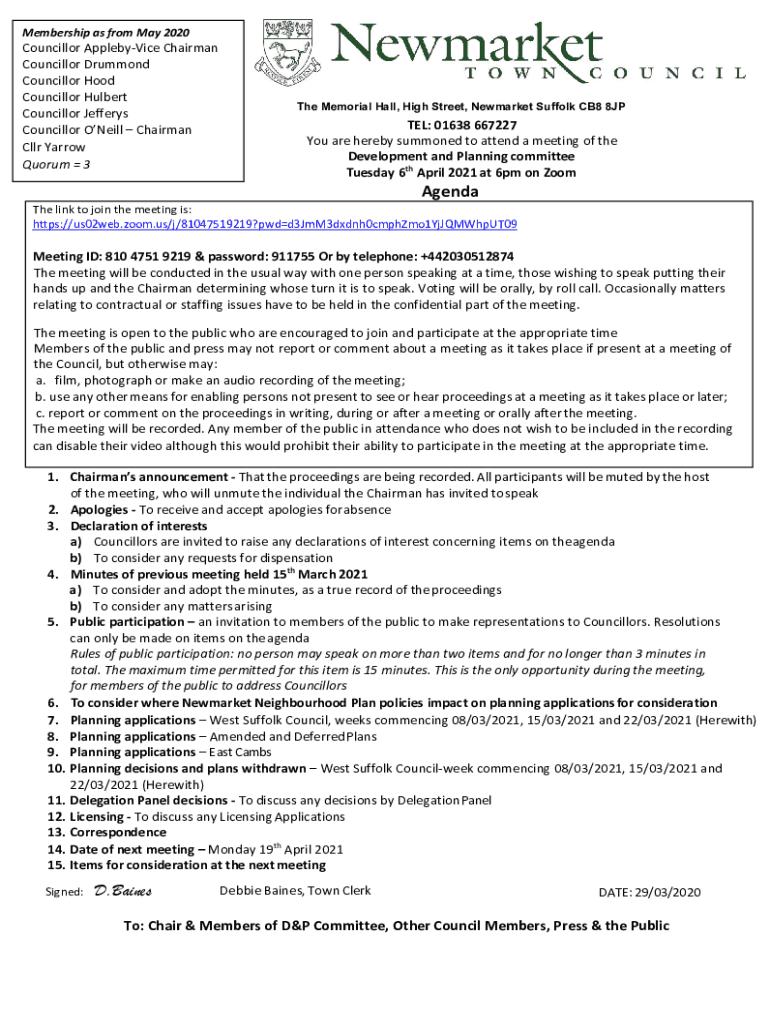 Membership as from May 2020Councillor ApplebyVice Chairman