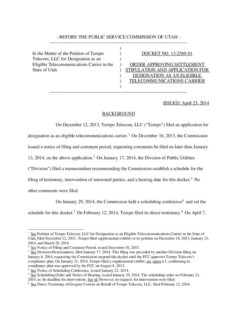 Get the free Application of Tempo Telecom, LLC for Designation as an ...