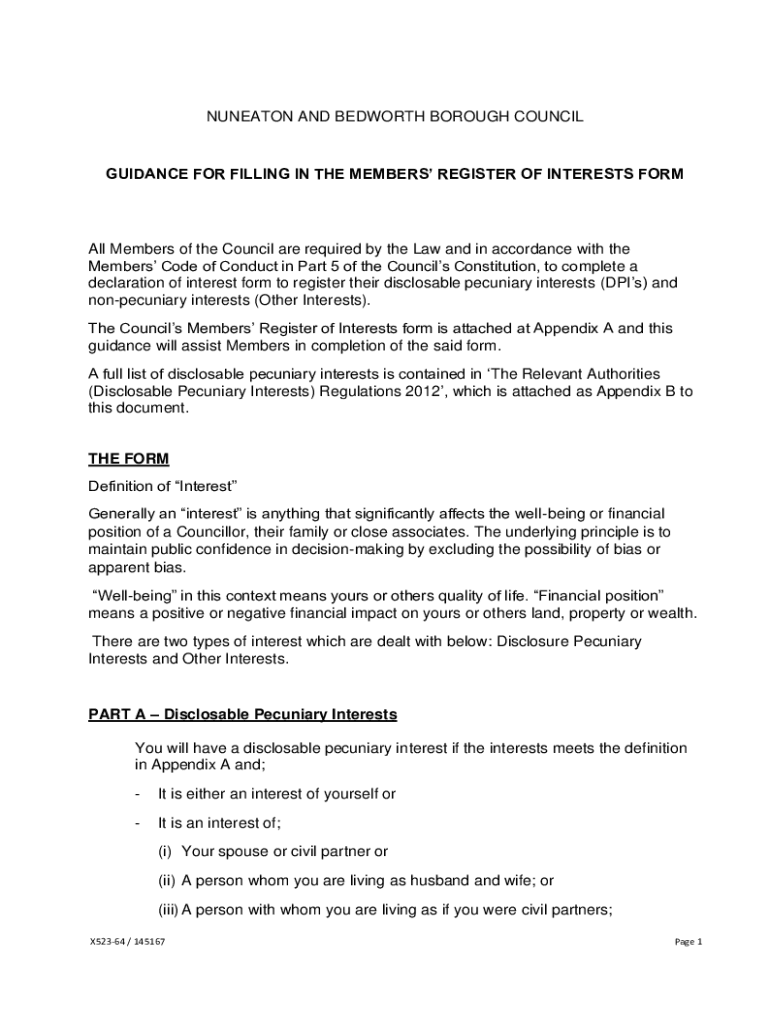 UNEATEN AND BEDWORTH BOROUGH COUNCILGUIDANCE FOR FILLING IN THE MEMBERS REGISTER OF INTERESTS Formal Members of the Council are required by the Law and in accordance with the Members Code of Conduct