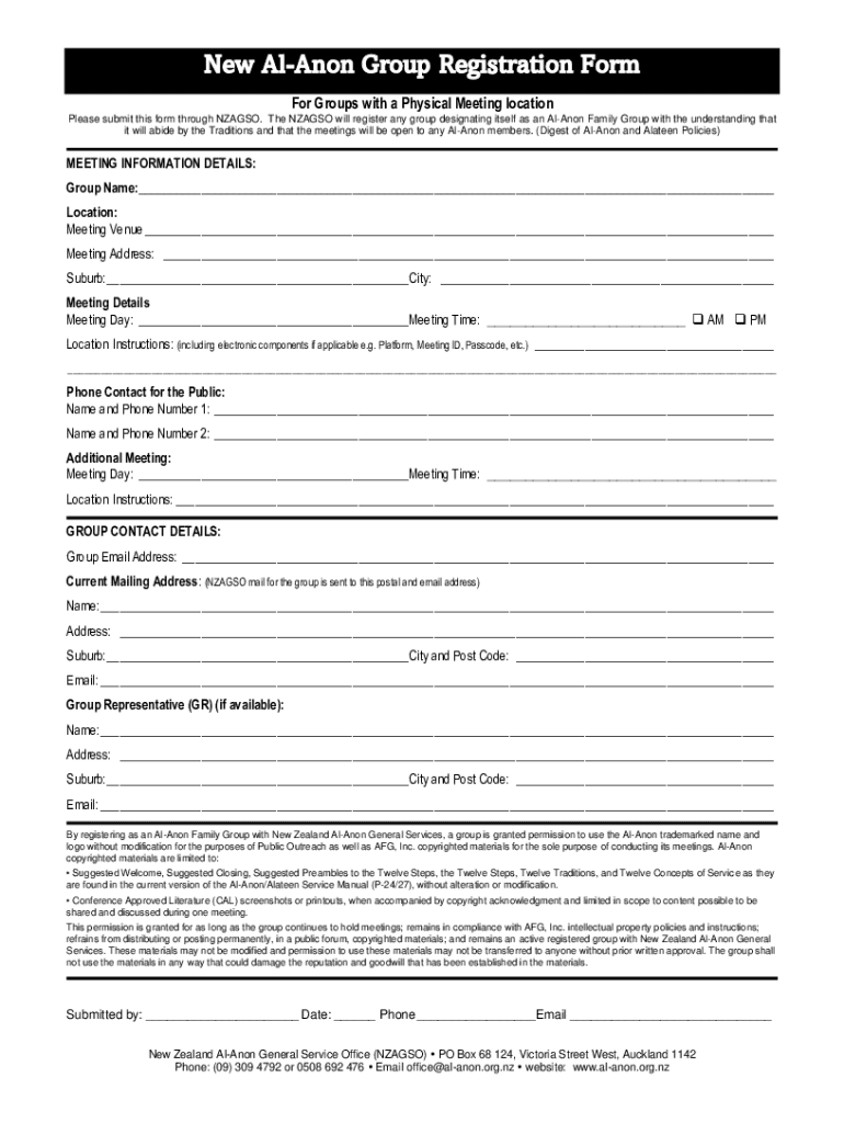 Get the free New Group Form - Al-Anon - al-anon org