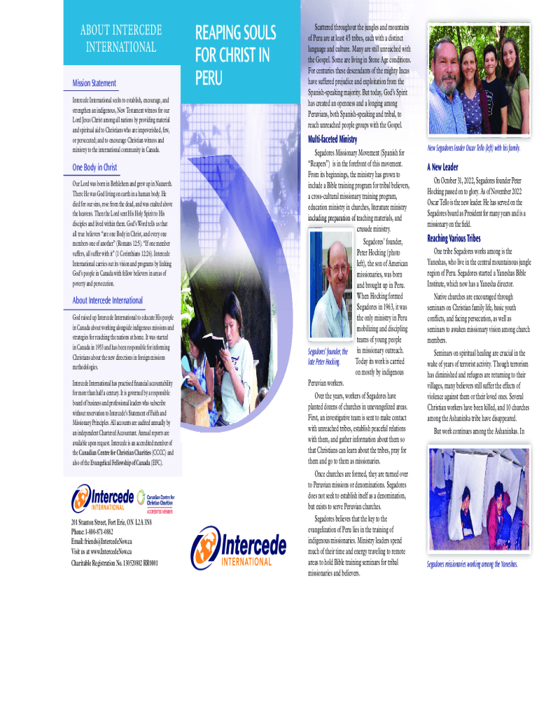 ABOUT INTERCEDE INTERNATIONAL Mission Statement Intercede International seeks to establish, encourage, and strengthen an indigenous, New Testament witness for our Lord Jesus Christ among all nations