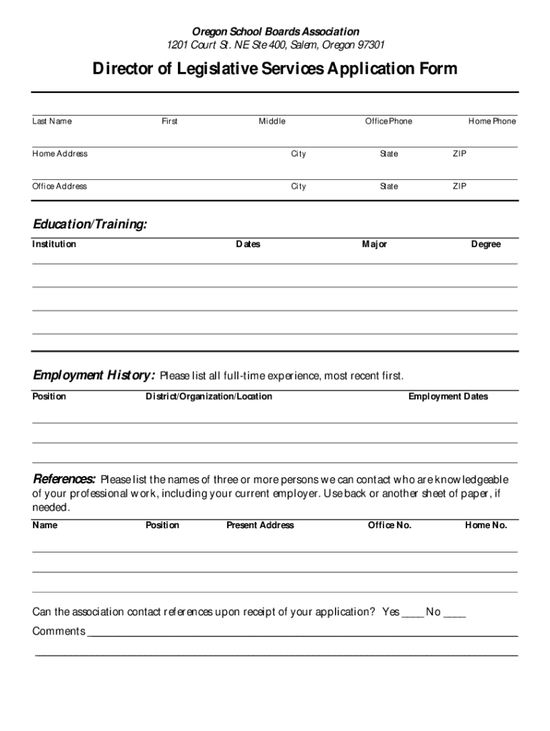 1201 Court St. NE Ste 400, Salem, Oregon 97301D director of Legislative Services Application Form