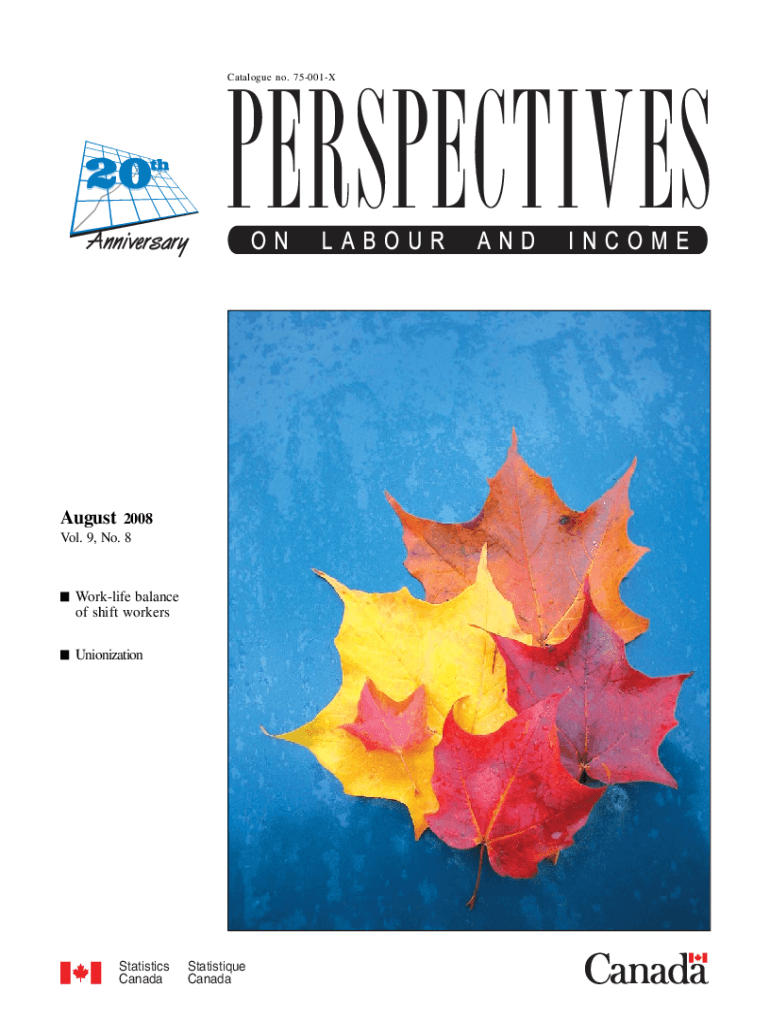 Get the free Perspectives on Labour and Income Volume 9 Number 8. cover-e - publications gc