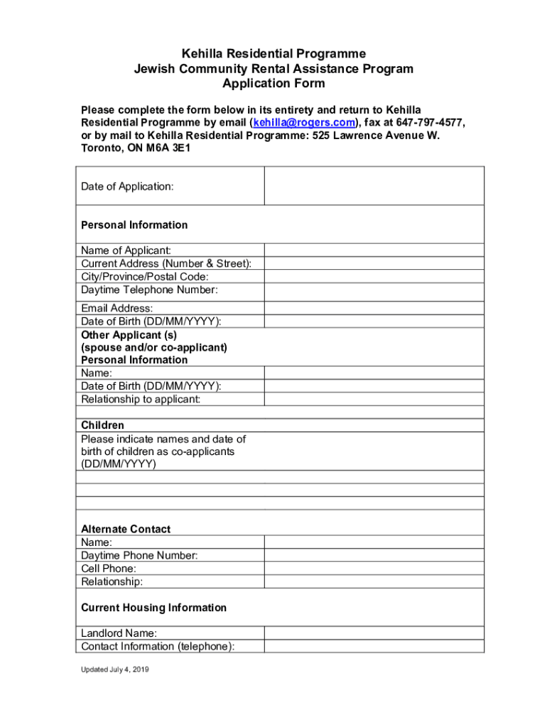 Get the free Kehilla Rental Assistance Program Application Form