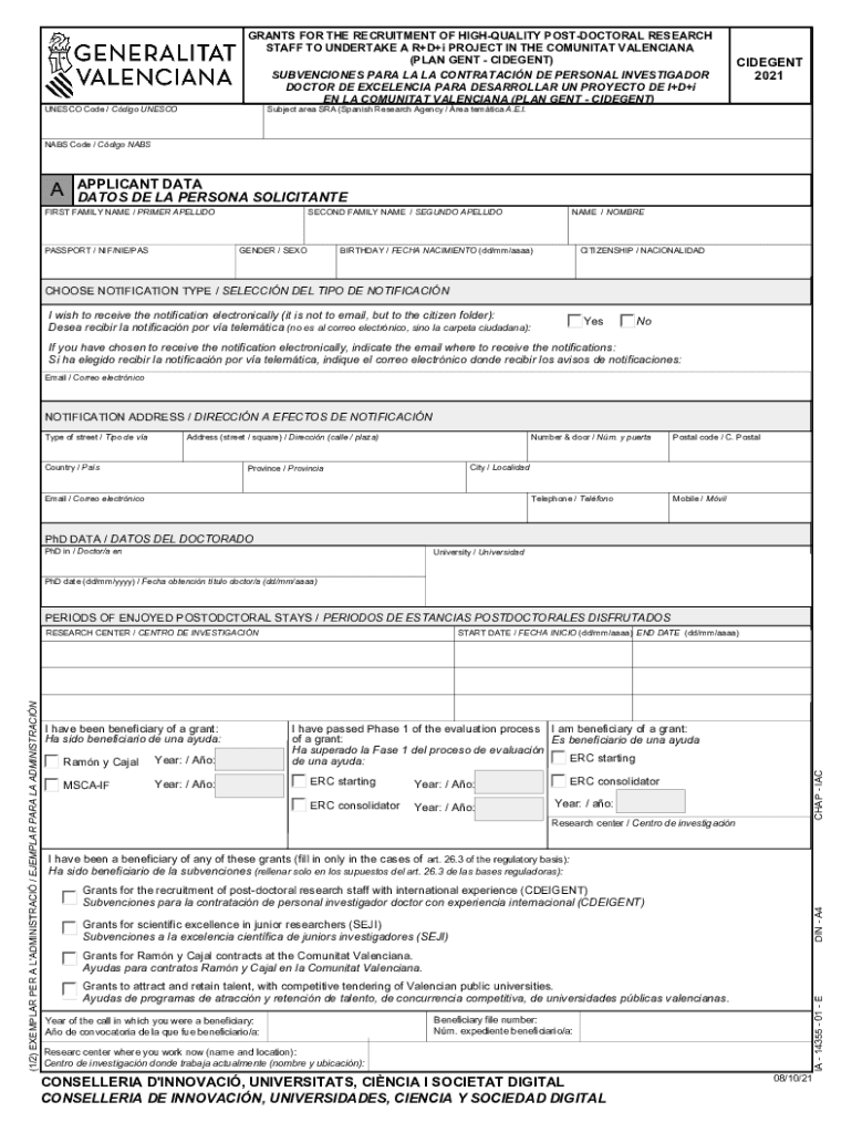 STAFF TO UNDERTAKE A R+D+i PROJECT IN THE COMMUNITY VALENCIANA