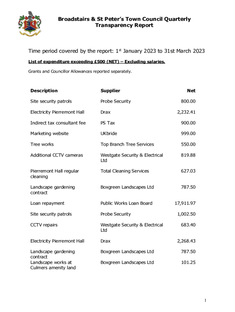 List of expenditure exceeding 500 (NET) Excluding salaries.
