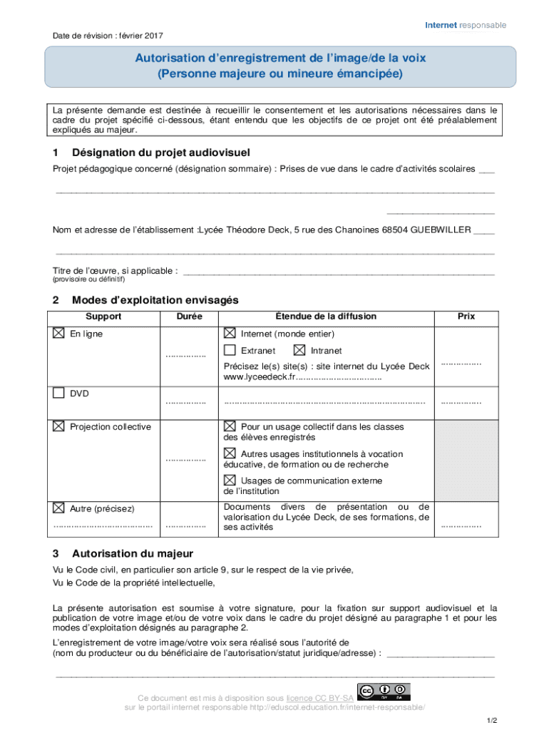 Pour remplir une autorisation d'enregistrement, il faut fournir toutes les informations demandées de manière claire et précise, en suivant les instructions fournies.