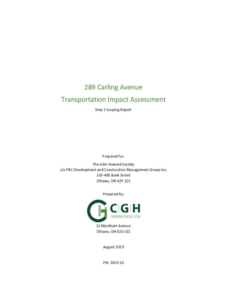 289 Calling Avenue Transportation Impact Assessment Step 2 Scoping ReportPrepared for: The John Howard Society c/o PBC Development and Construction Management Group Inc. 105485 Bank Street Ottawa,