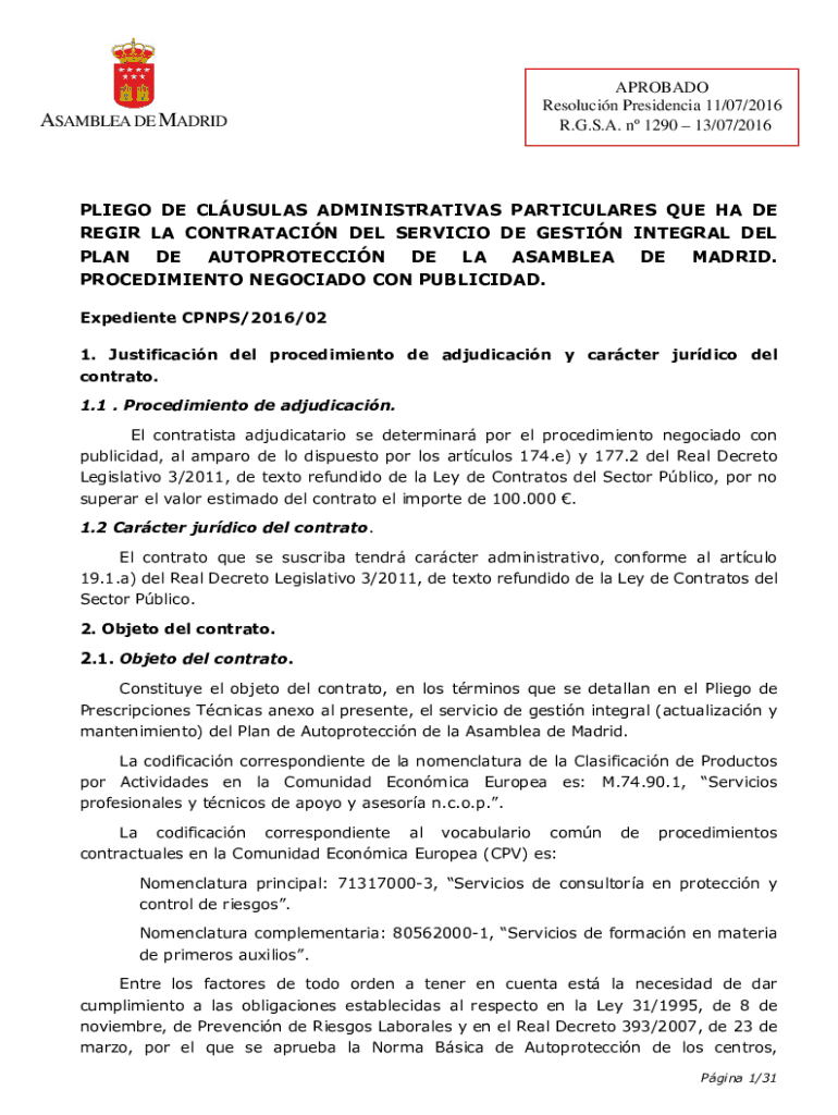 R.G.S.A. n 1290 13/07/2016PLIEGO DE CLUSTERS ADMINISTRATIVE PARTICULARS QUE HA DE