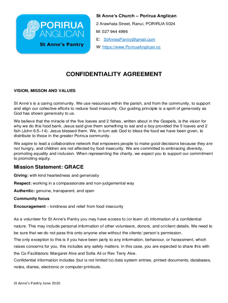 W: https://www.PoriruaAnglican.nzCONFIDENTIALITY AGREEMENT