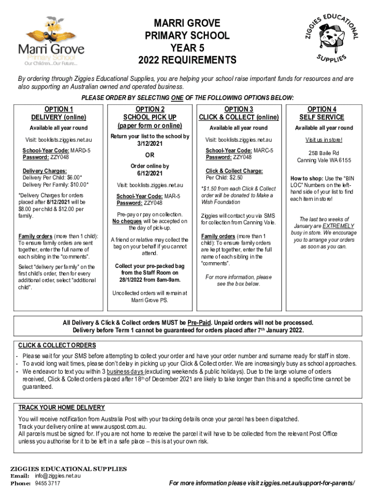 MARRY GROVE PRIMARY SCHOOL YEAR 5 2022 REQUIREMENTS By ordering through Piggies Educational Supplies, you are helping your school raise important funds for resources and are also supporting an Australian