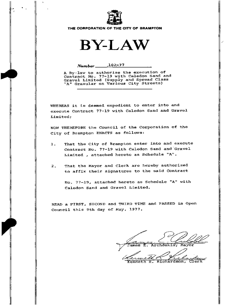 THE CORPORATION OF THE CITY OF BRAMPTONBYLAW/Number _ _1:;, O;;.:2;;;, :;::,7:.;7:.... _ _ __A Bylaw to authorize the execution of Contract No. 7719 with Caledon Sand and Gravel Limited (Supply and